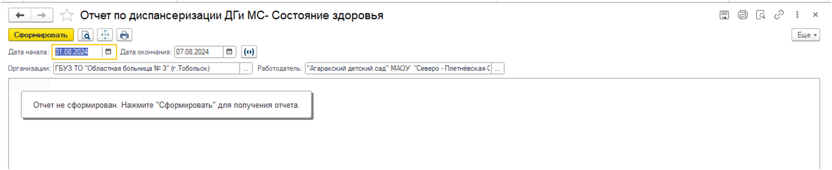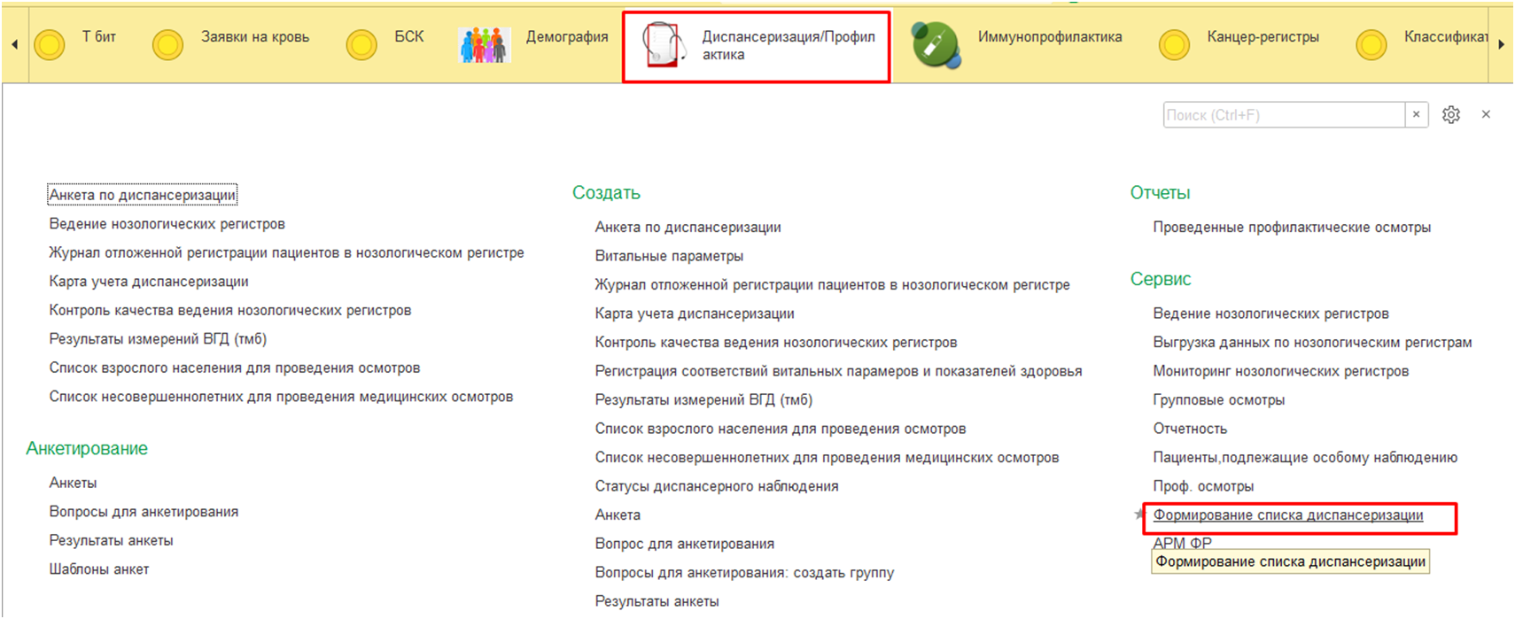 Рисунок 1 – обработка «Формирование списка диспансеризации»