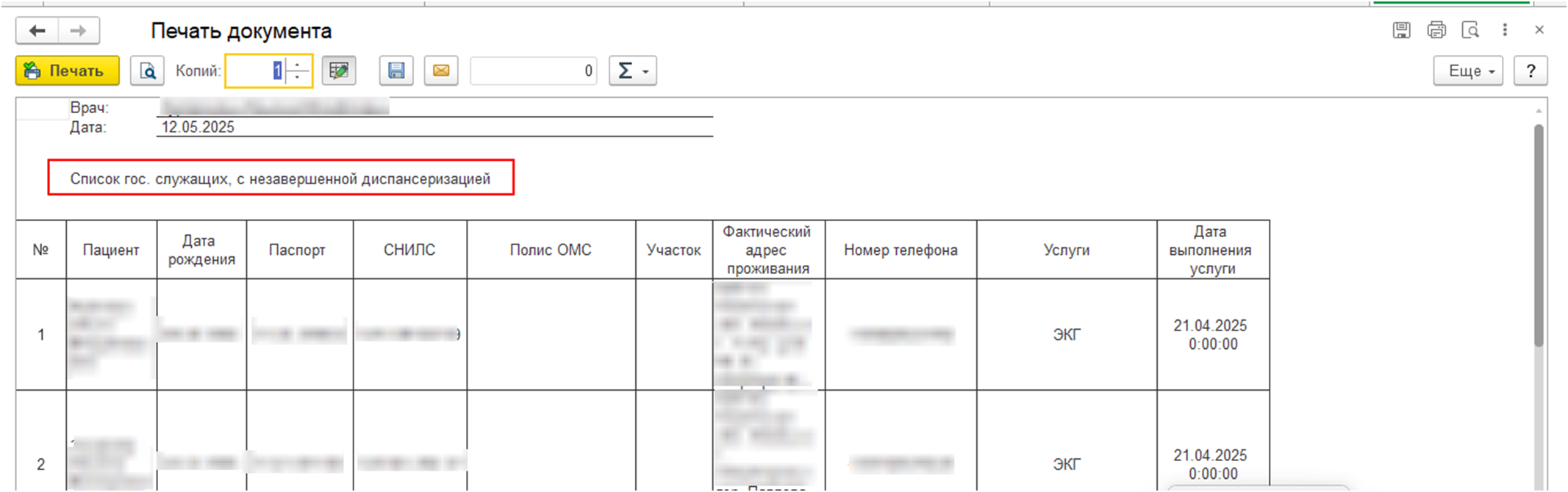 Рис. 6 Список гос. служащих, с незавершенной диспансеризацией