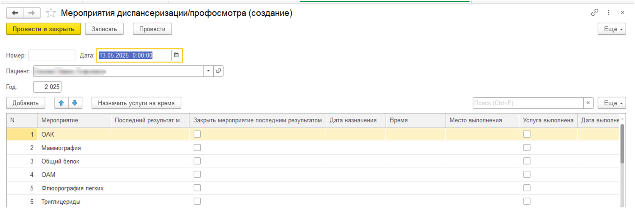 Рис. 19 Кнопка «Мероприятия диспансеризации/профосмотров»