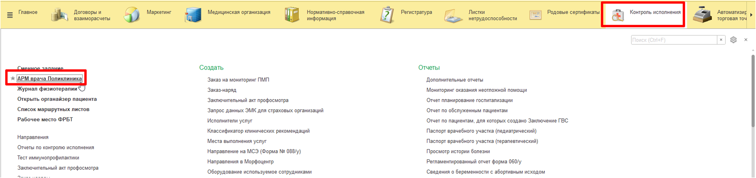 Рисунок 3 – переход по ссылке «АРМ врача Поликлиника»