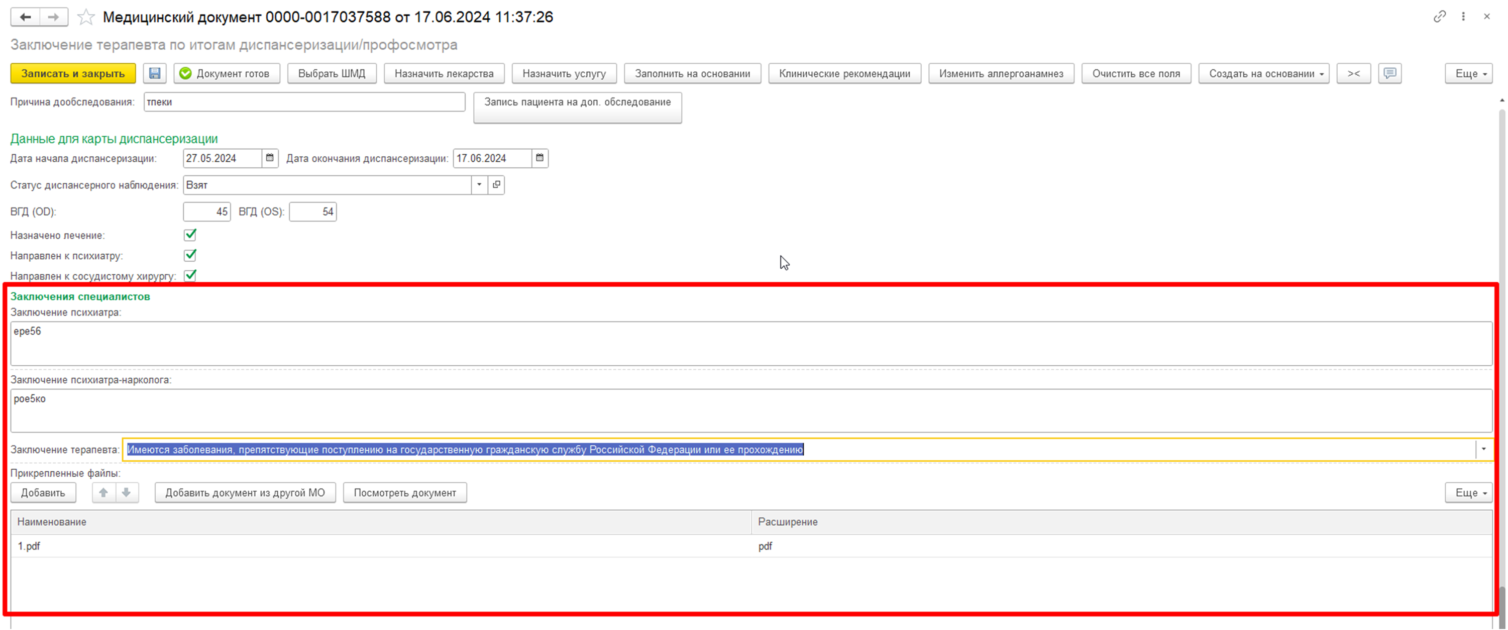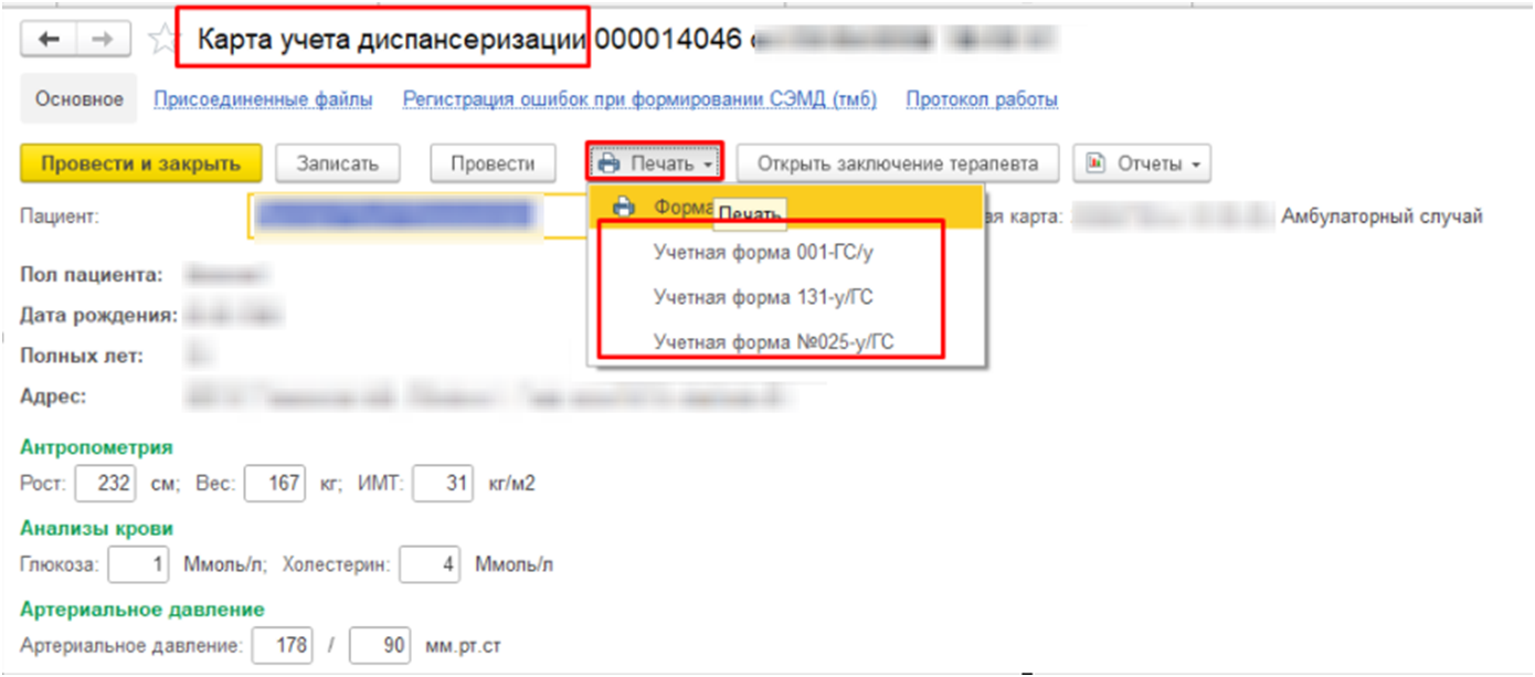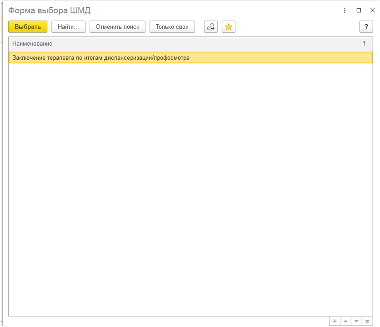 - ШМД «Эпикриз по результатам диспансеризации/профосмотров» (так некоторые данные берутся из этого ШМД для документа «Карта учета диспансеризации», чтоб в дальнейшем можно было провести док-т);