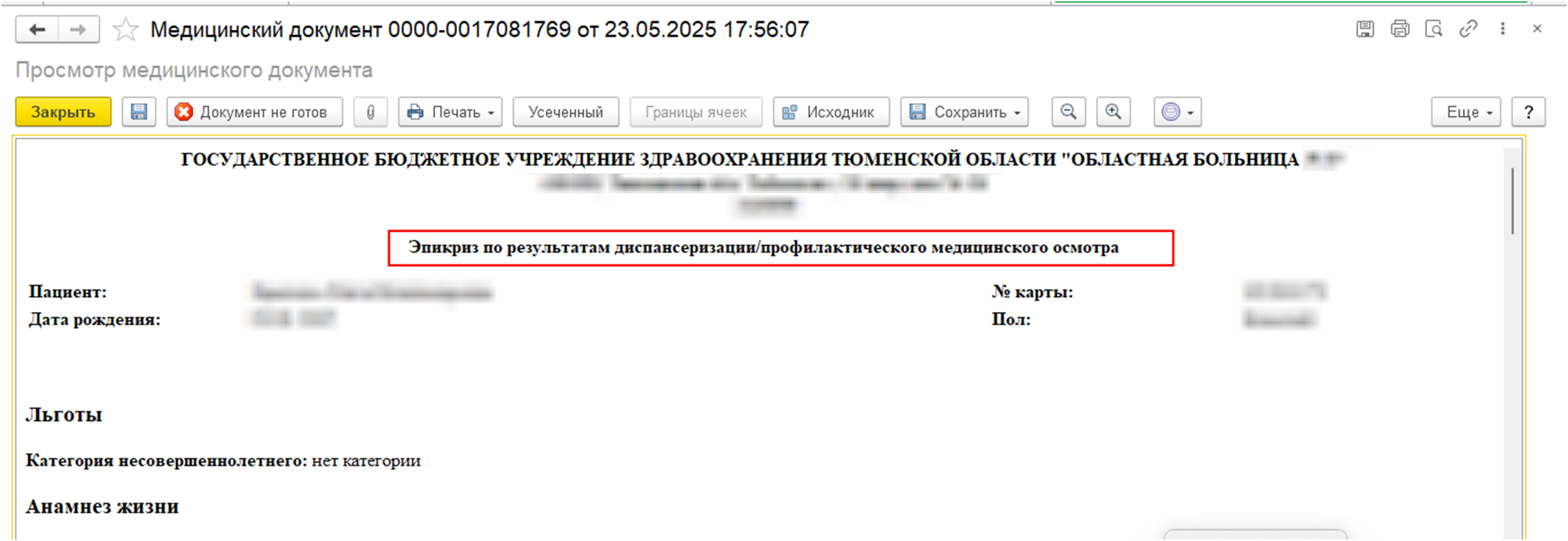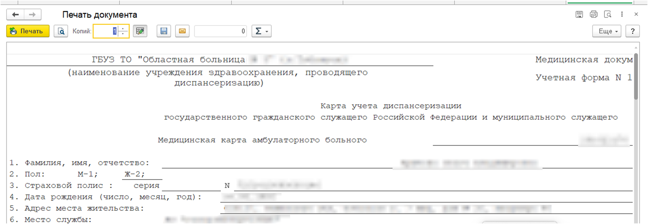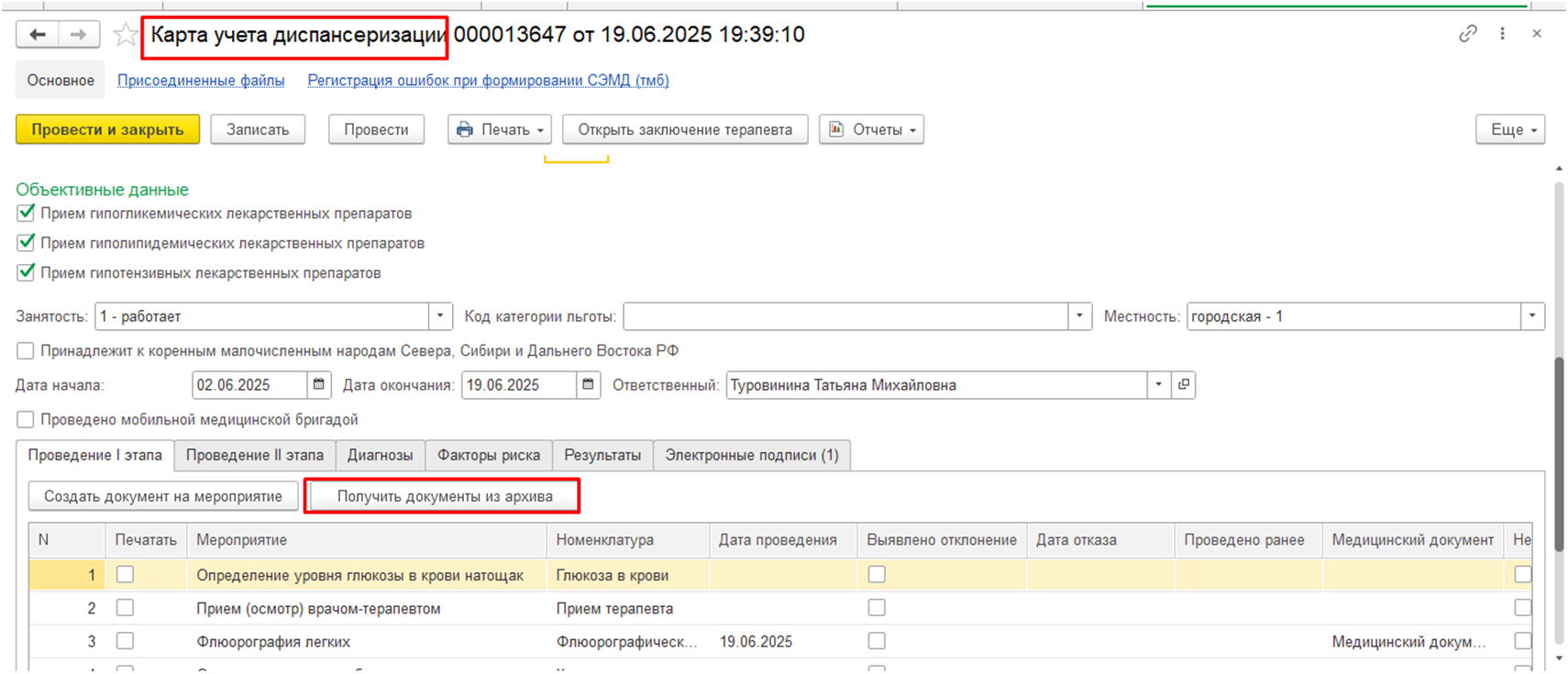 - ШМД «Эпикриз по результатам диспансеризации/профосмотров» (так некоторые данные берутся из этого ШМД для документа «Карта учета диспансеризации», чтоб в дальнейшем можно было провести док-т);