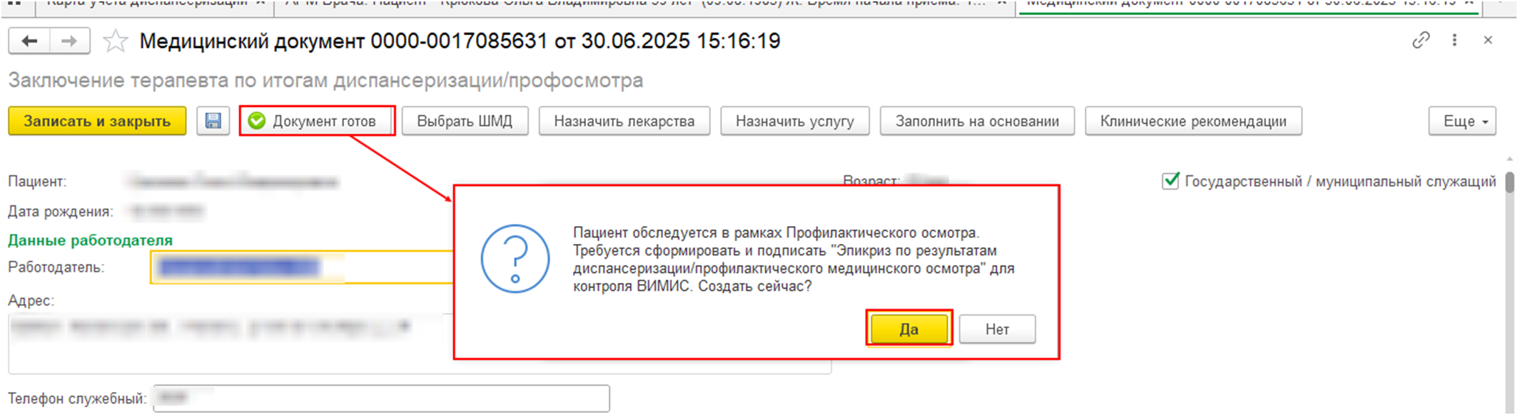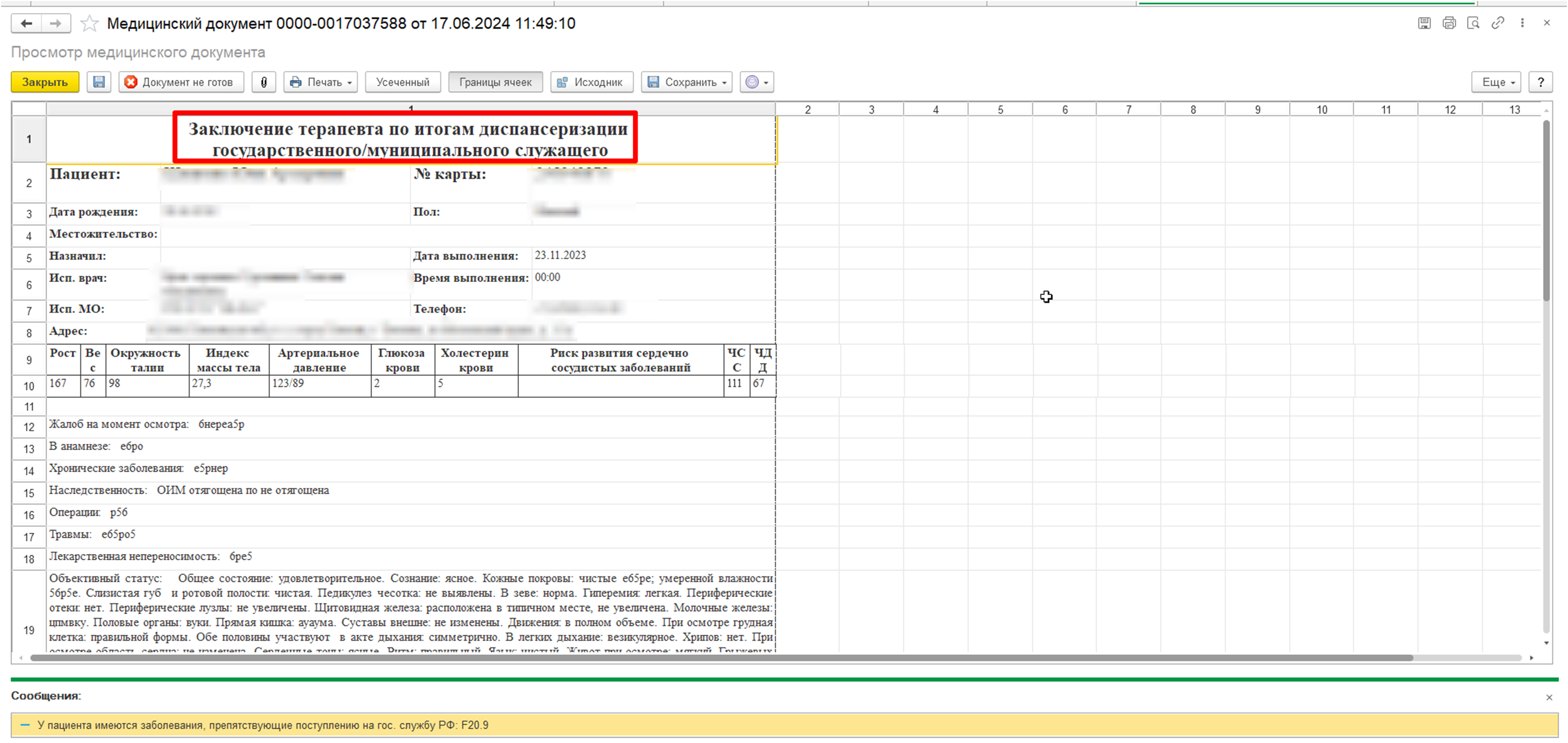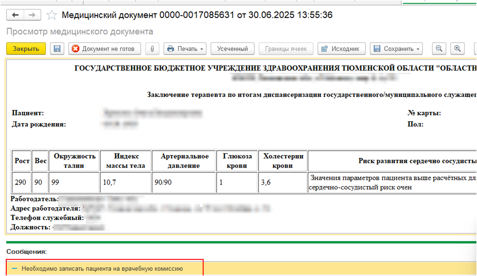 ШМД «Заключение терапевта по итогам диспансеризации/профосмотров» доработан следующим образом:
