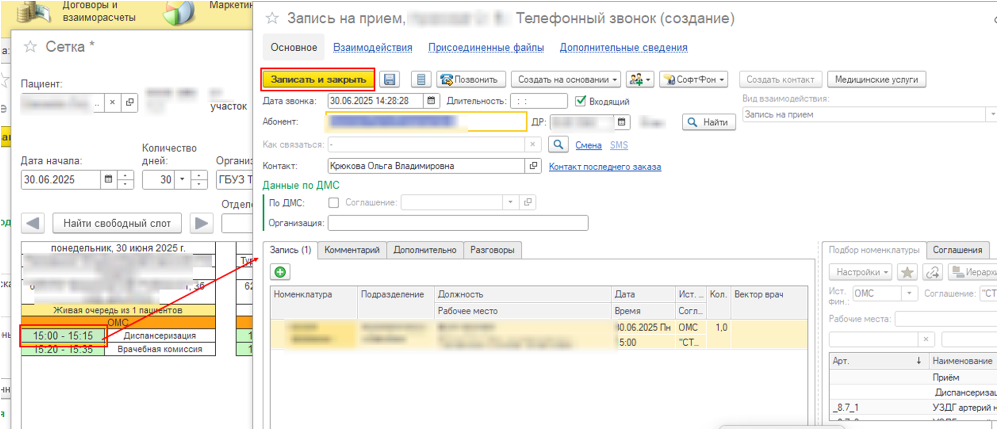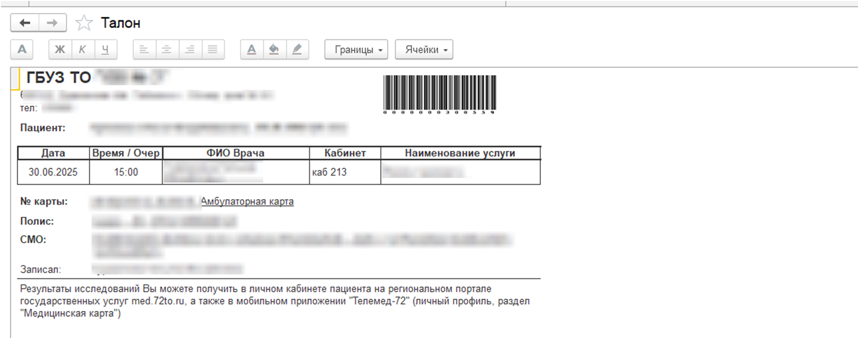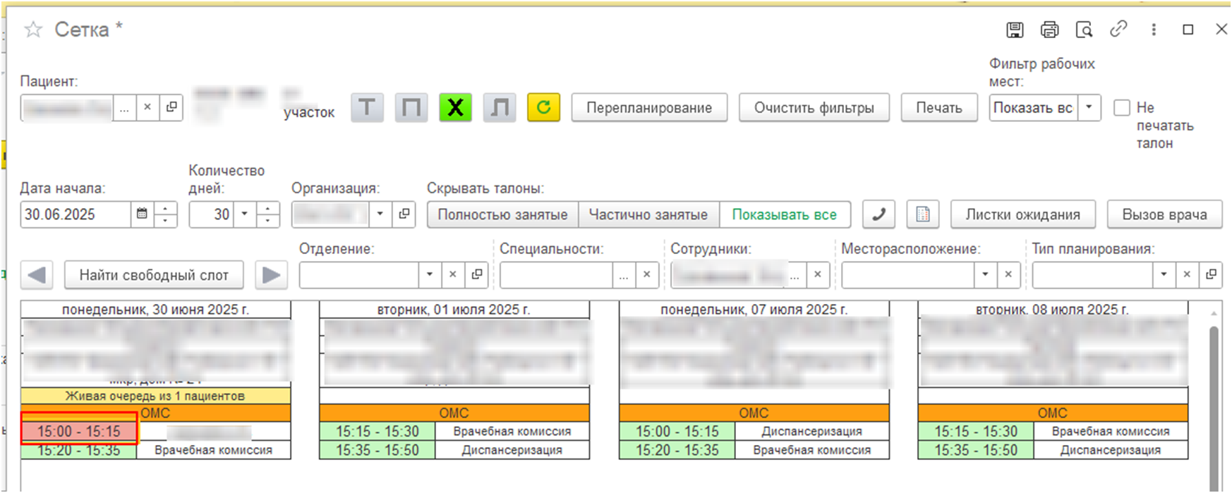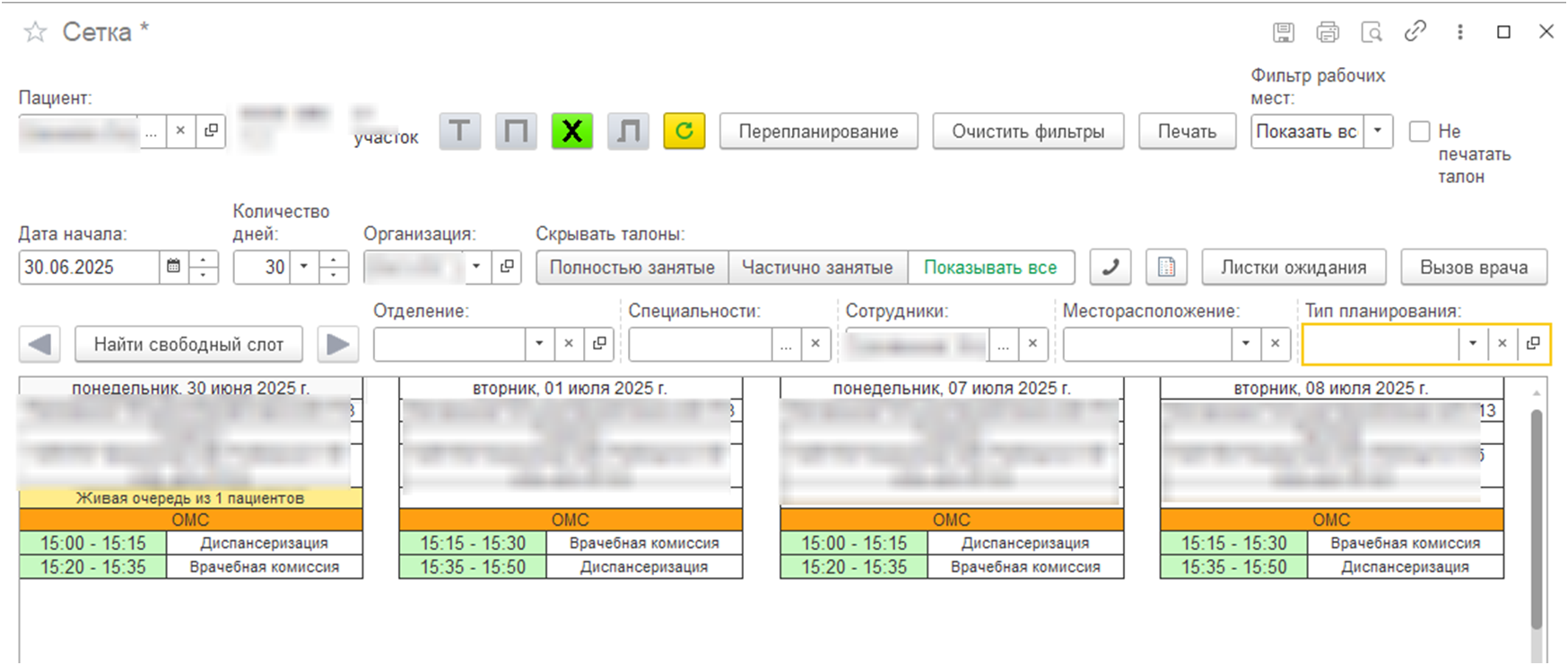 - После команды «Документ Готов» открывается формирование сетки для записи пациента на ВК (рис. №11).