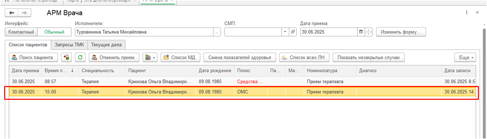 Рисунок 12 – переход по ссылке «АРМ врача Поликлиника»
