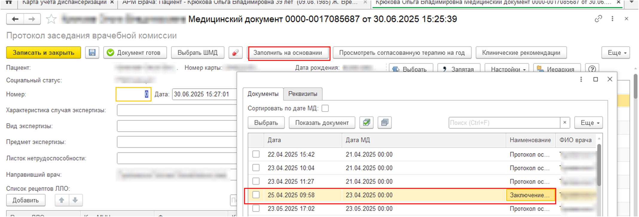 3.3 Доработка ШМД «врачебной комиссии Протокол»
