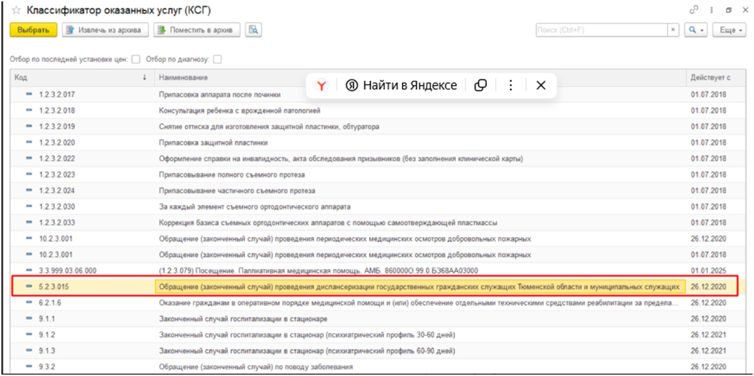 Рис. 56 Справочник «Классификатор оказанных услуг»