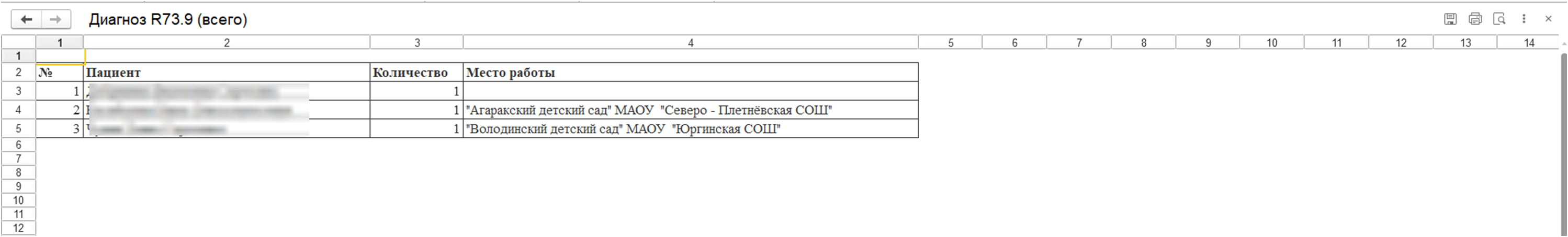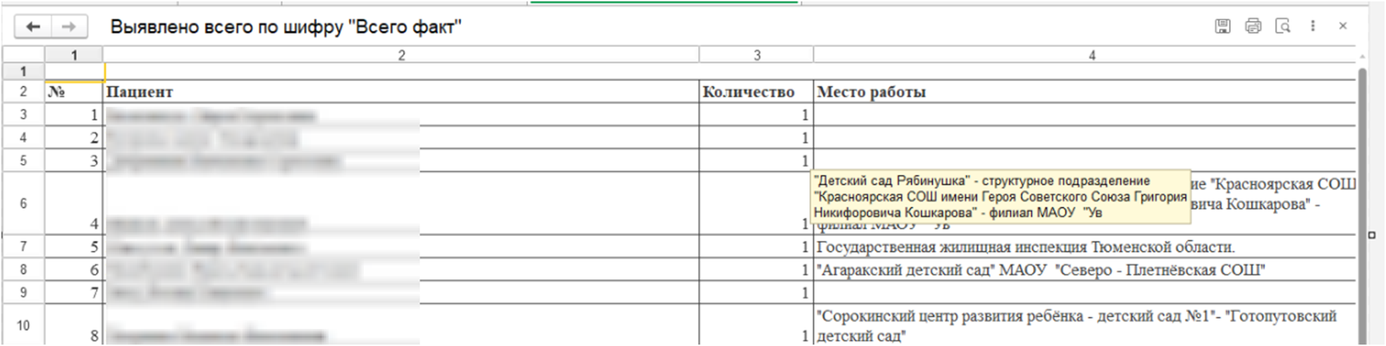Также в отчете предусмотрена расшифровка по пациентам в столбцах отчета с 1-11 (рис. №40№61).