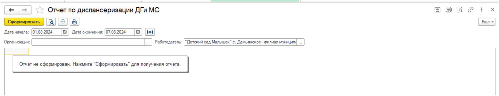 Рисунок 39 – сформированныйРис. 60 Сформированный отчет о проведении диспансеризации гос. и муниципальных служащих (ДГиМС) (локальный отчет)