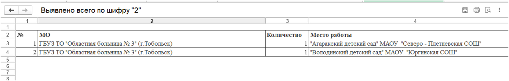 В отчете предусмотрена расшифровка по МО, для этого необходимо щелкнуть левой кнопкой мыши по выбранному полю в столбцах 4 и 5 (рис. №57№78).