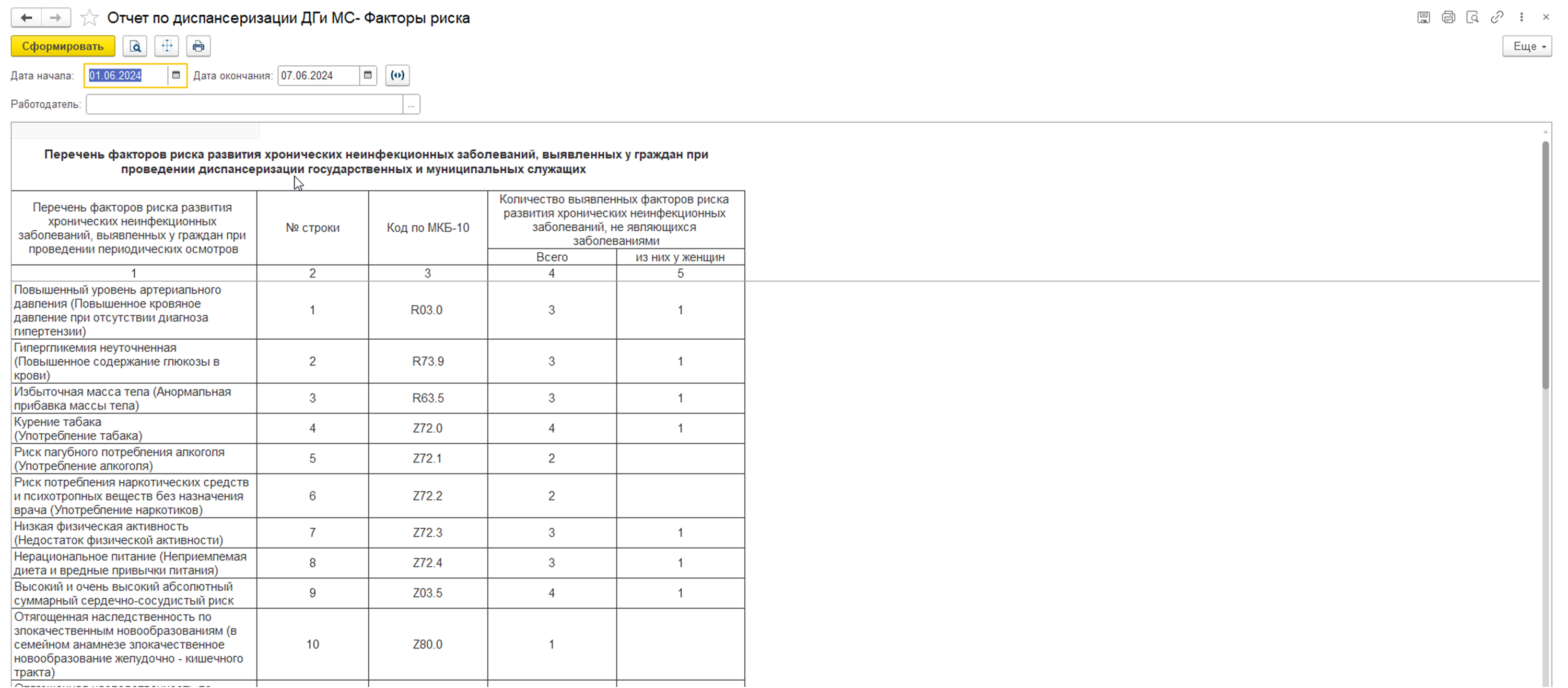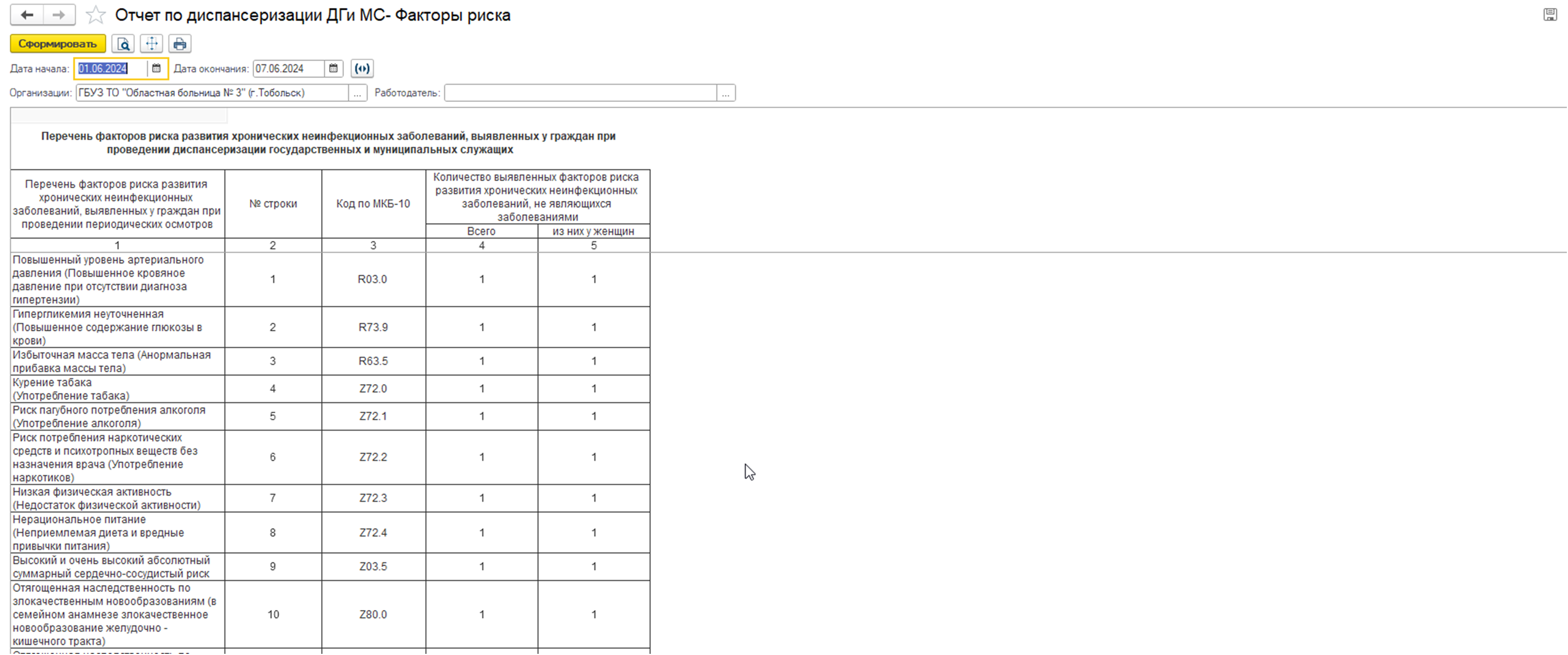 3 8. 10 Отчет «Перечень факторов риска хронических неинфекционных заболеваний, выявленных у граждан при проведении диспансеризации государственных и муниципальных служащих»