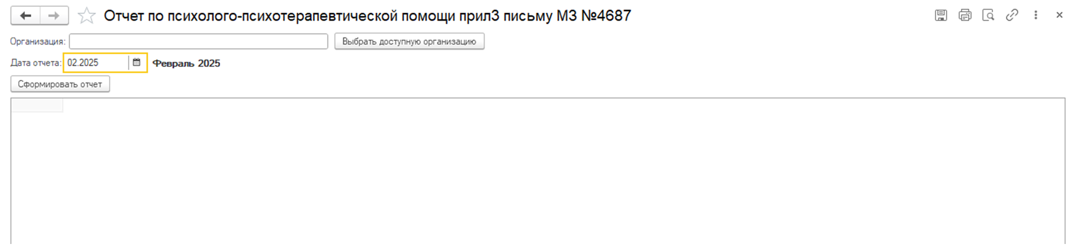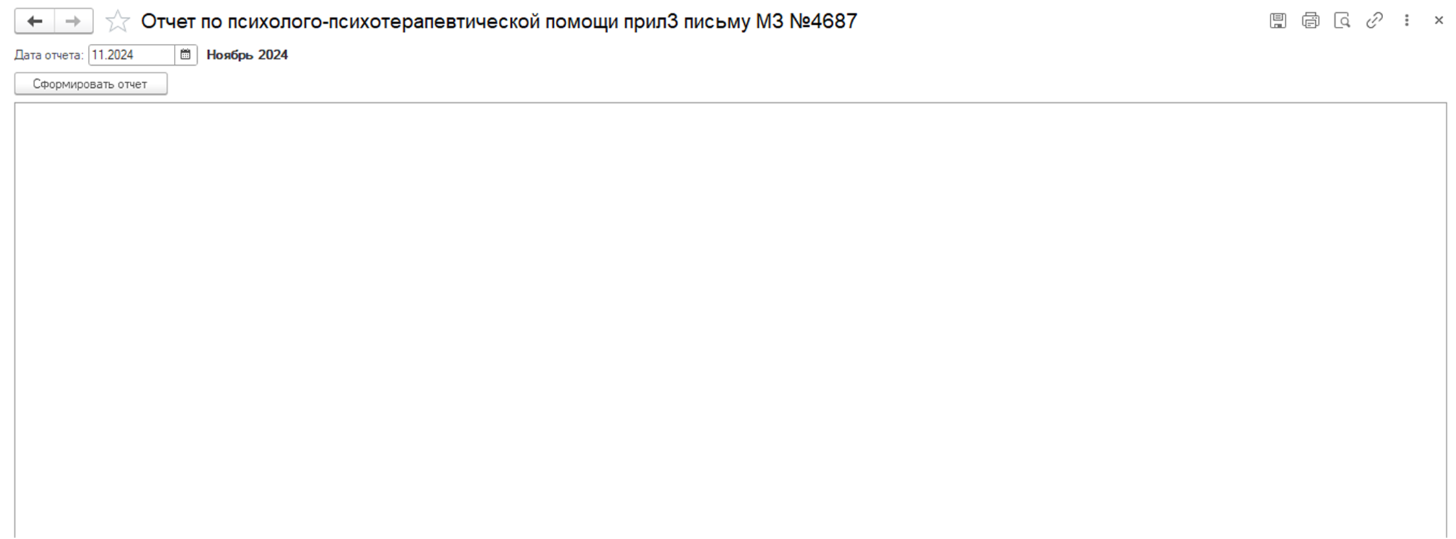 Рисунок 10 - Форма отчета «Отчет по психолого-психотерапевтической помощи прил3 письму МЗ №4687»