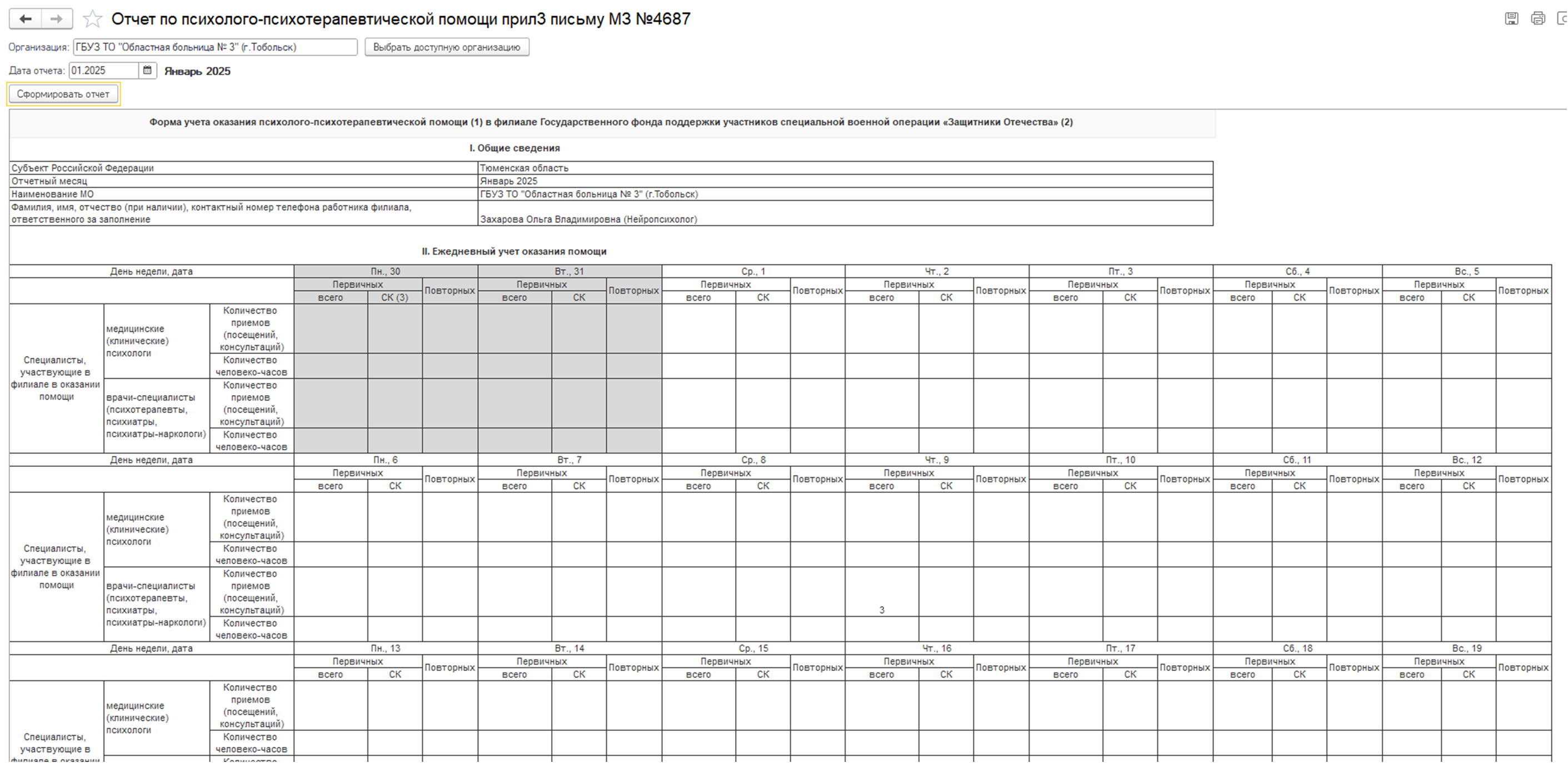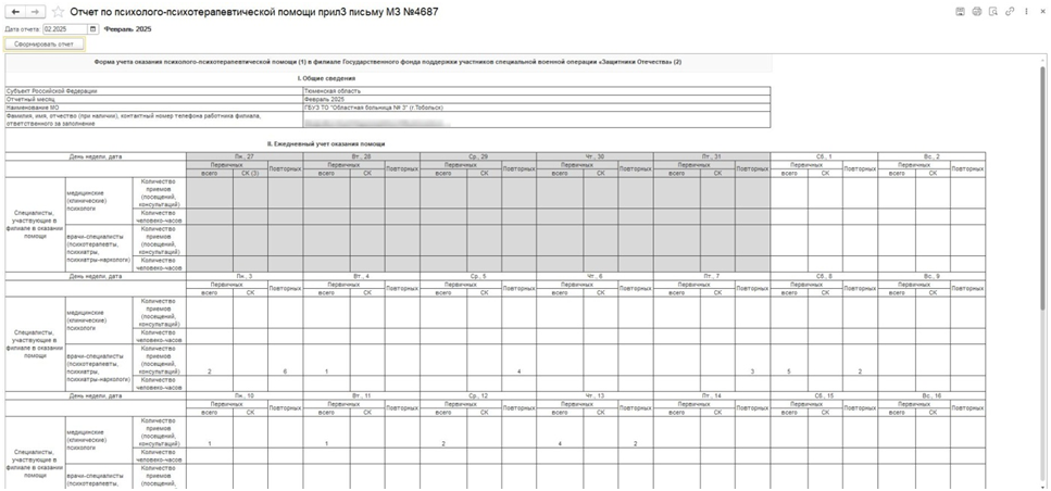 Рисунок 5 – Сформированный отчет «Отчет по психолого-психотерапевтической помощи прил3 письму МЗ №4687»