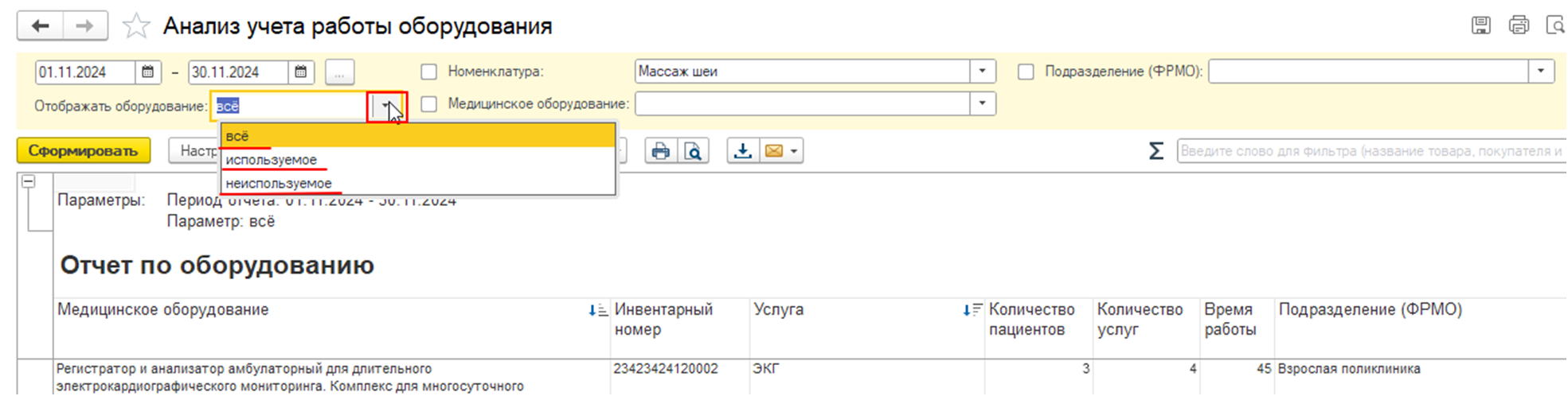 Рис.6 Убрать подразделение для отображения всего списка оборудования