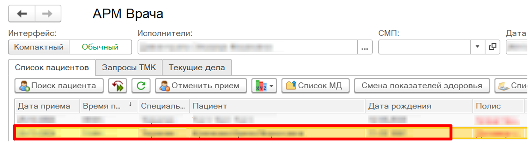 В списке записанных на прием пациентов выбрать двойным кликом пациента (рис. 2)