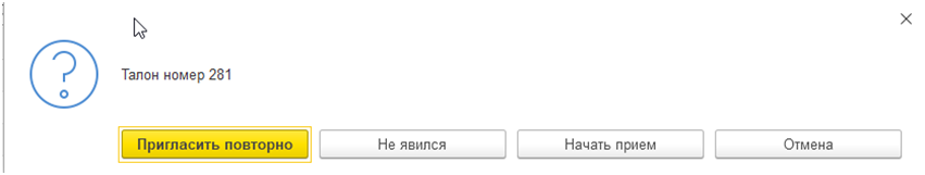 - Если нажать «Пригласить повторно», пациента вызовут повторно;