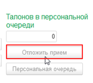 В случае, если врачу приемного отделения необходимо отложить прием текущего талона в персональную очередь, то врач должен на форме приемного отделения нажать кнопку «Отложить прием»