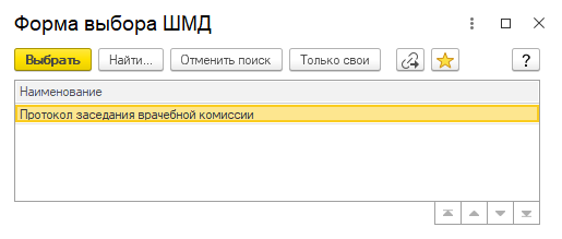 В перечне записанных пациентов найти нужного, двойным щелчком по пациенту перейти во вкладку "Приемы", выбрать случай и добавить посещение (либо открыть новый случай). В открывшемся окне выбора ШМД выбрать "Протокол заседания врачебной комиссии".