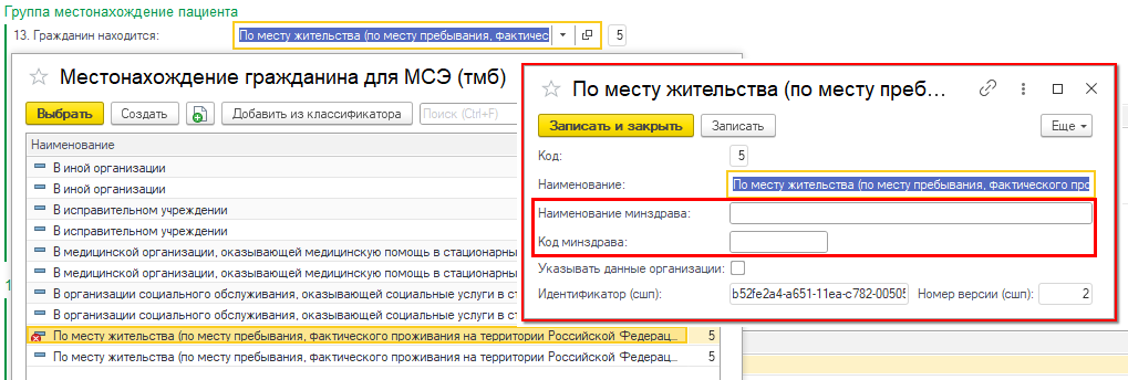 В п. 13 выбрано значение, у которого не заполнены данные минздрава (наименование, код), а также помечено на удаление