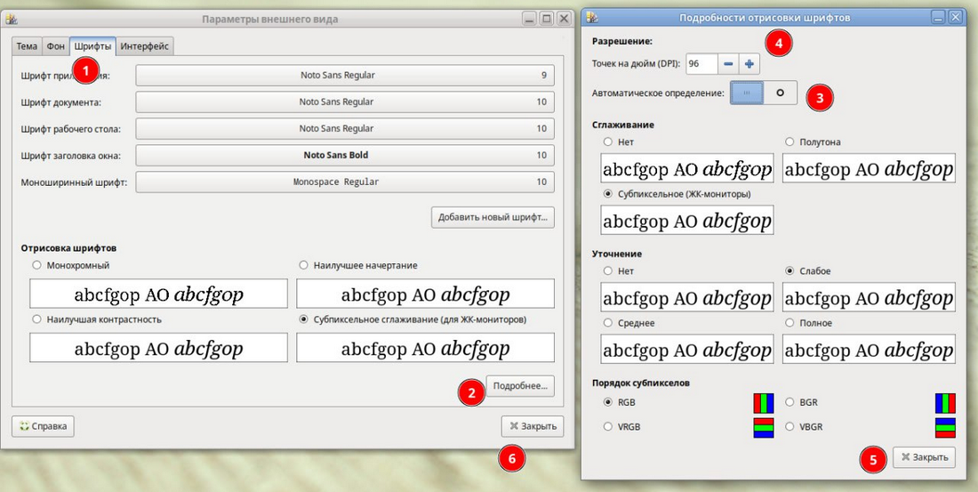 Нажать ПКМ по рабочему столу, выбрать "параметры внешнего вида". В открывшимся окне выбрать "Шрифты" (1) - "Подробнее" (2) - убрать автоматические определение (3) - поставить 96 точек (если было другое значение) (4) и закрыть (5), (6).