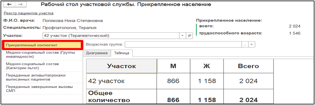 Рисунок 1.13 – Отображение информации о численности прикрепленного населения в виде таблицы
