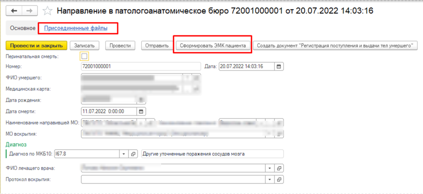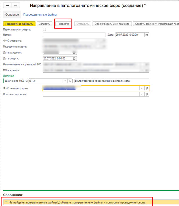 Если МО направившая и МО вскрытия совпадают, возможность провести Направление без прикрепления Присоединенных файлов будет.