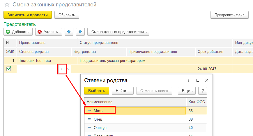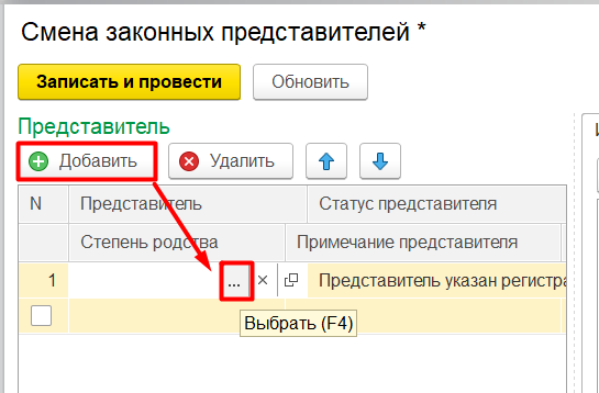 Только после этого в форме «Смена законных представителей» можно нажимать «Записать и провести».