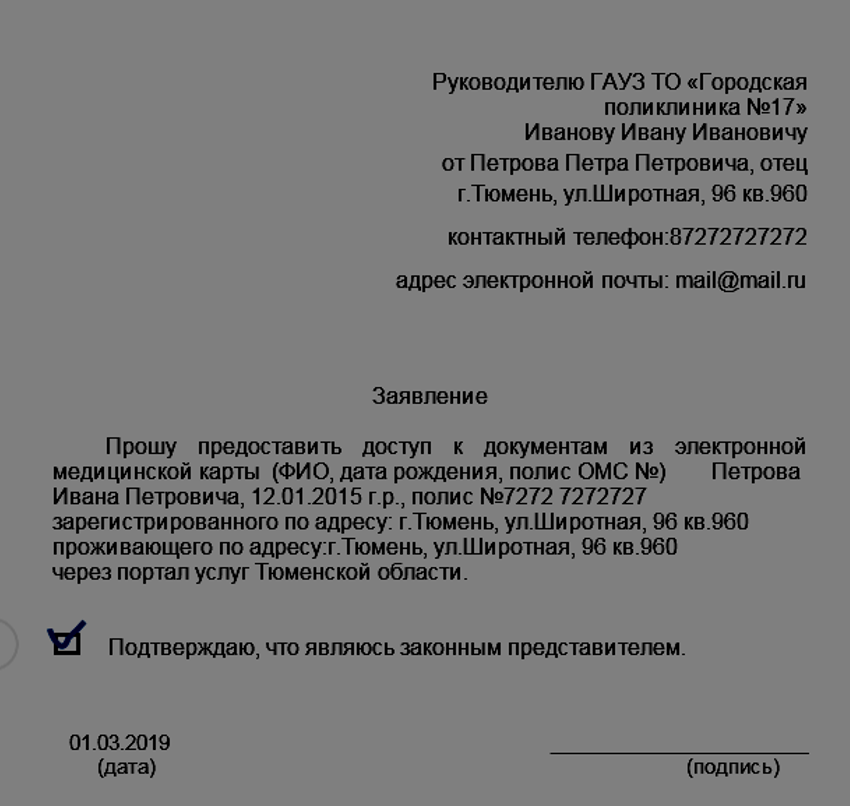 После того, как представитель написал заявление, в МИС нужно проставить отметку для доступа к ЭМК несовершеннолетнего. После этого нажать кнопку «Записать и провести».