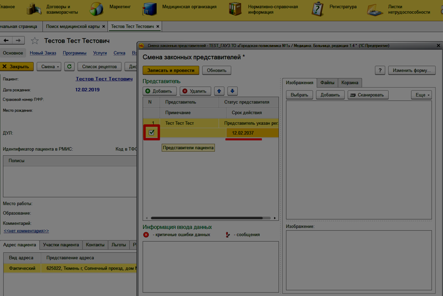 Важно! чтобы добавить представителя, он должен быть создан в МИС, как пациент!