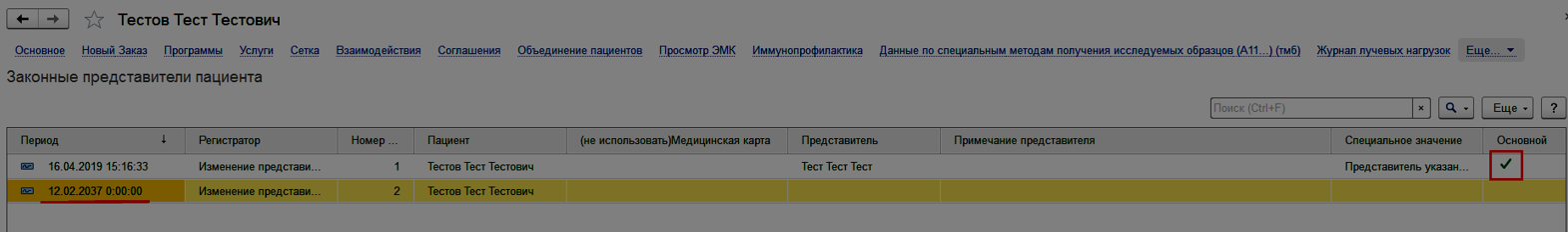 Важно! Представитель указывается до даты совершеннолетия пациента.