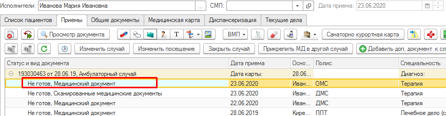 В результате в амбулаторный случай добавлен мед.документ.