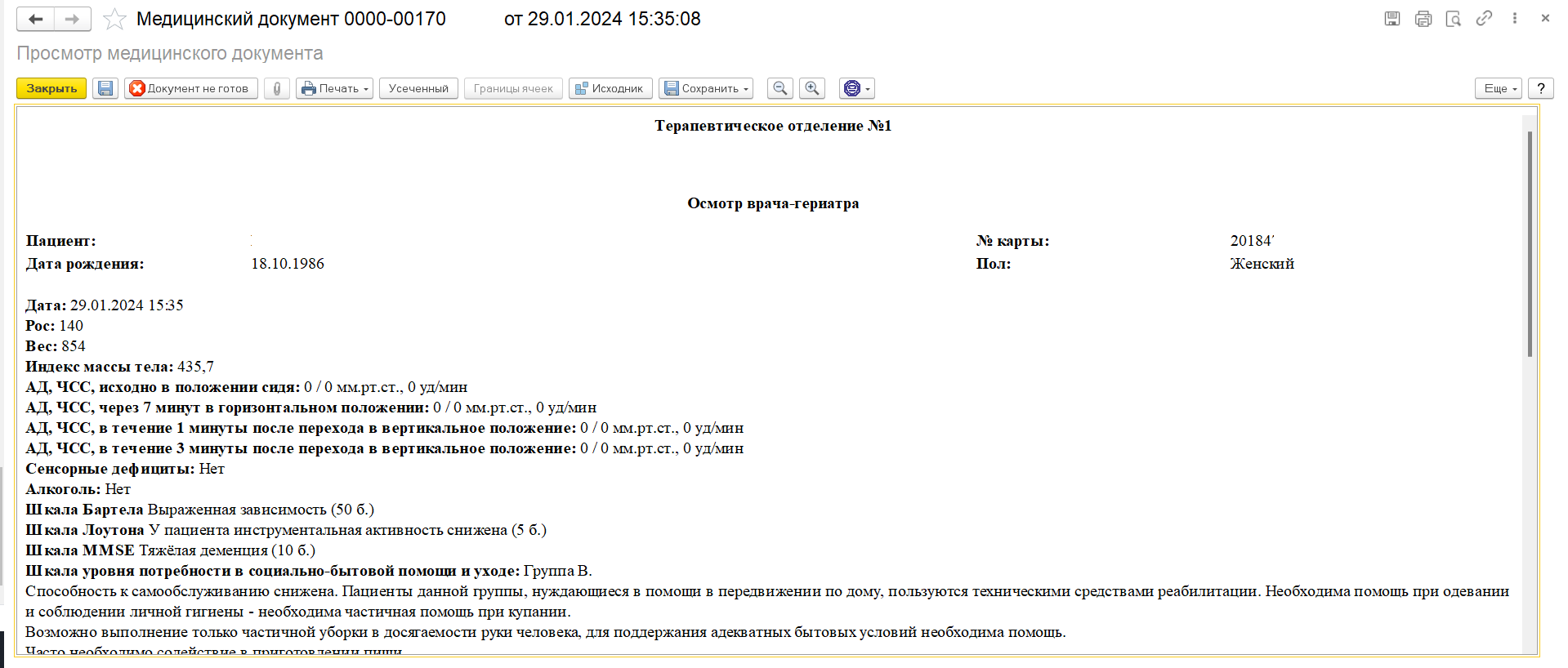 "Дата установления диагноза R54" подтягивается автоматически, если раняя данный диагназ был установлен. Если дианоз был установлен на приеме, то поставится дата приема. Так же поле является редактируемым для врача.