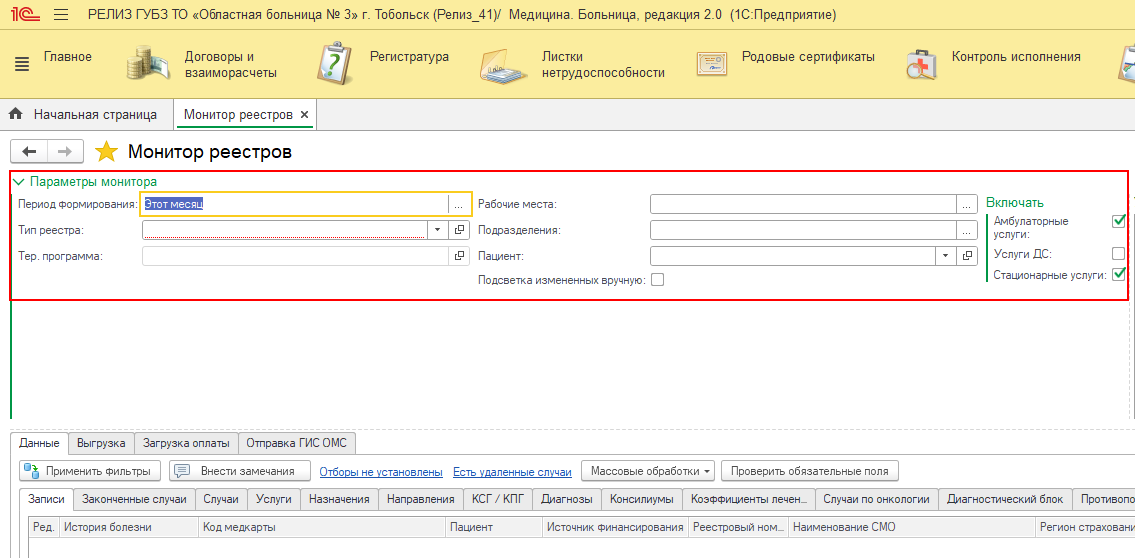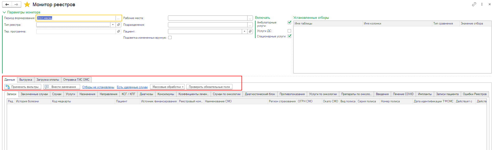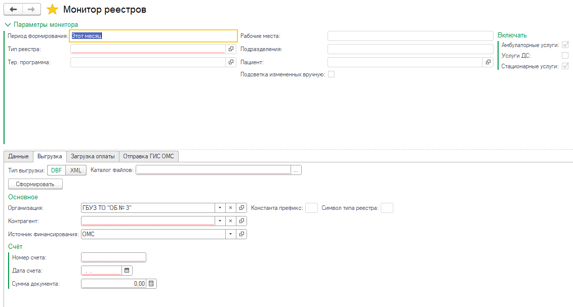 На вкладке «Выгрузка» расположен функционал для формирования и выгрузки реестра.
